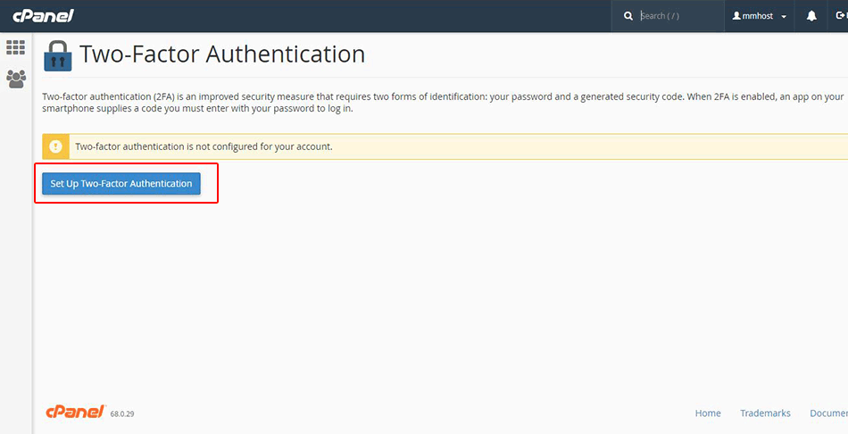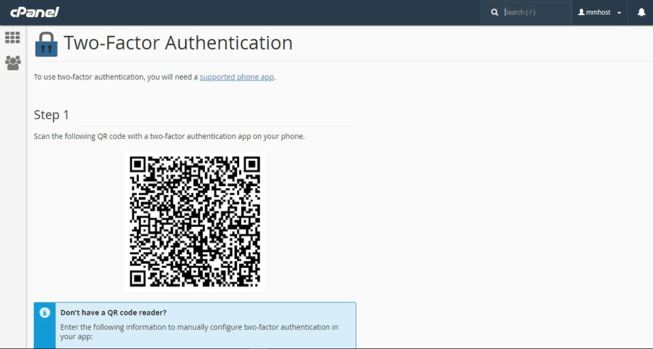 Shwe Hosting မှ Customer များအနေဖြင့် မိမိတို့၏ Hosting Control Panel (cPanel) အား ပိုမို Security ပိုမြင့်၊ လုံခြုံစေရန် Two-Factor Authentication ထားရှိနိုင်ပါသည်။ Two-Factor Authentication ဆိုသည်မှာ အားပုံမှန် Username နှင့် Password သာရိုက်ထည့်ပြီး Login ဝင်နိုင်သည်ကို ပိုမိုလုံခြုံစေရန် 3rd Party Authentication Tool တစ်ခုဖြစ်သော Google Authenticator - Mobile Phone App ဖြင့် Authentication ပြုလုပ်မှ cPanel ထဲသို့ဝင်လို့ရအောင် ပြုလုပ်ခြင်းဖြစ်သည်။ Enable ပြုလုပ်ရန် အောက်ပါ Step များကိုကြည့်ပါ။
